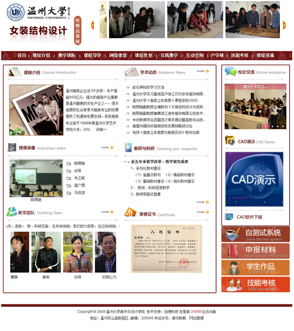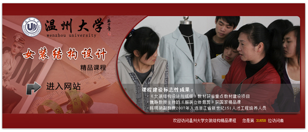 我公司為溫州大學(xué)服裝學(xué)院,建立的女裝結(jié)構(gòu)設(shè)計(jì)精品課程 經(jīng)溫州市教育局評(píng)審被評(píng)為溫州市高等學(xué)校市級(jí)精品課程網(wǎng)站。這也是我公司開創(chuàng)了第二個(gè)市級(jí)精品課程網(wǎng)。同時(shí)也慶祝公司在精品課程網(wǎng)站制作方面更上一個(gè)新的臺(tái)階,同時(shí)希望以后能夠?yàn)楦叩仍盒7?wù),創(chuàng)立更好的網(wǎng)站。
